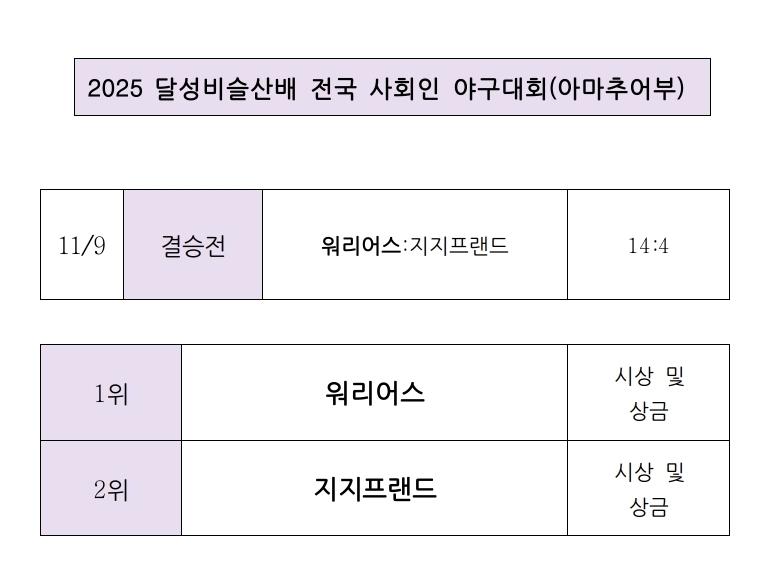 2025 달성비슬산배 전국 사회인 야구대회 [ 아마추어부 ] 결승전 결과