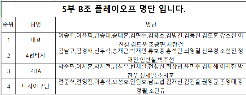5부 B조 플레이오프 명단 입니다.